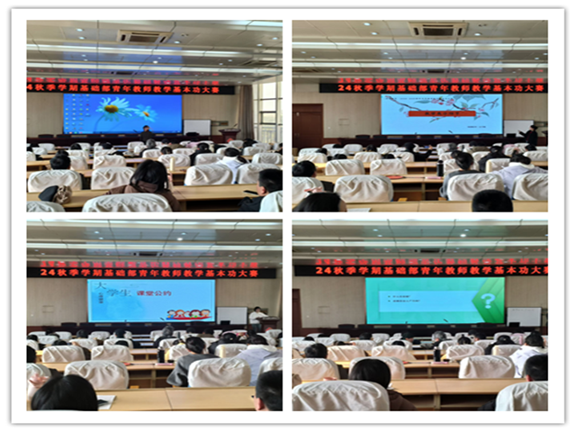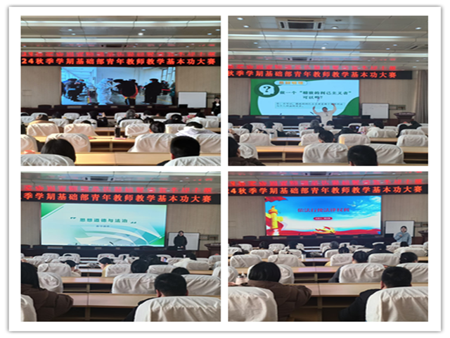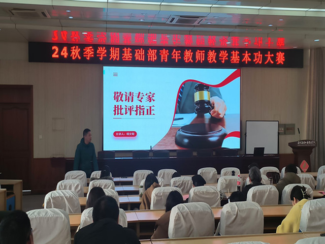 2025年1月2号下午,在阶梯教室301,由基础部主办的一场青年教师基本功大赛成功落幕。这场比赛为来自基础部体育教研室和思政教研室的优秀青年教师提供了一个展示自我、切磋技艺的平台,充分体现了教育工作者们的教学热情和职业素养。
