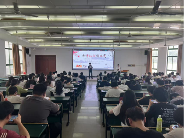 5月28日下午由基础部主办,海子经典诗文诵读专业社团承办的安徽省第七届中华经典诵写讲大赛选拔赛在学院阶梯教室101举办,活动吸引了200多名同学参加。