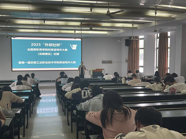 为提高学生英语写作水平、选拔优秀选手参加第十六届“外研社杯”全国高等职业院校英语写作大赛(安徽赛区)复赛,2025年10月17日,学院2025年高职英语写作大赛在天井湖校区教学楼阶梯教室101举行,来自全院57名学生同场竞技。