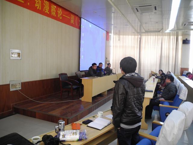 首先,朱导介绍了国内外目前动漫的形势。他提到,2011年,国内动漫年产量为20万多分钟,而日本为9万多分钟。由此可见,国内的动漫市场还是相当大的。虽然年产量高,但国内动漫依然缺乏高质量、高关注度的作品。所以,中国只能算是动漫大国,而不是动漫强国。要改变这种境况,需要同学们好好学习,将来投身于动漫行业。