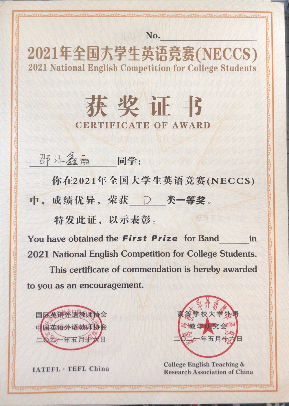 近日大赛组委会公布了获奖名单,邵汪鑫雨同学荣获决赛一等奖。