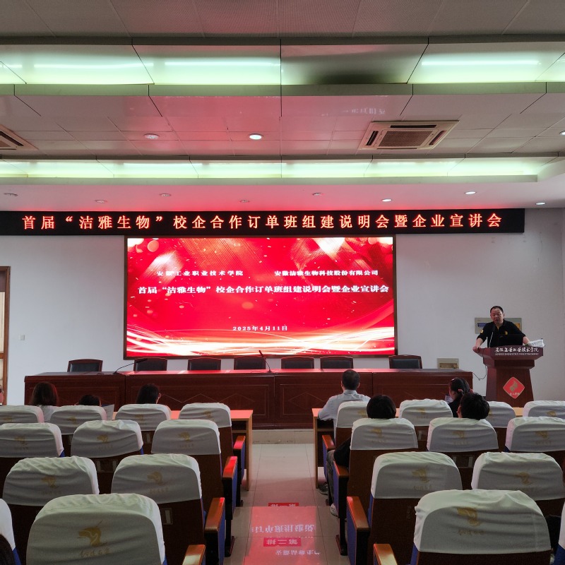 为深化产教融合,精准服务铜陵市主导产业发展,4月9日至11日,在教学楼201报告厅,学院联合中车长江铜陵车辆有限公司、安徽旋力特钢集团有限公司、铜陵洁雅生物科技股份有限公司三家企业,面向学院2023级高职学生,举办校企合作订单班组建说明会暨企业宣讲会。