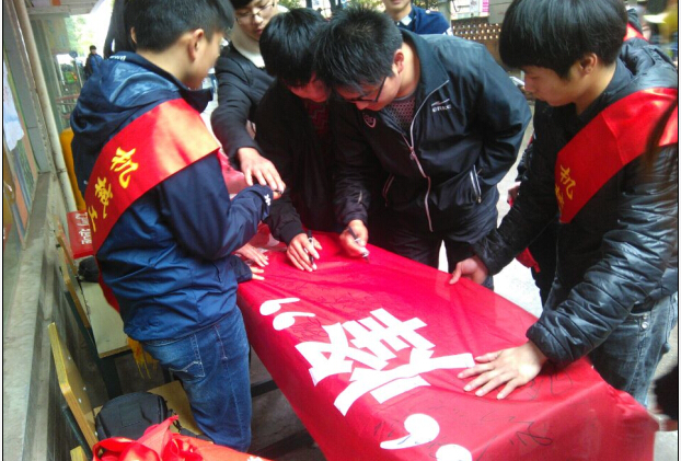 3月20日中午,机械系实践部组织了一批14级热心志愿者对金年会实训楼楼道、花坛等进行了一次彻底的清扫,此次活动不仅美化了校园,为同学们营造了一个舒适的生活学习环境,同时使同学们体会到了劳动的快乐。在清扫校园的同时,女生食堂、男生食堂开展“光盘行动”活动。另外,我系实践部制作“烽火相传,勤俭节约从我做起”的条幅,召集我系全体同学于女生食堂门口进行了签字活动,并在活动结束后将条幅悬挂在女生食堂外,此活动得到了师生的好评。