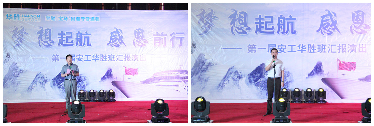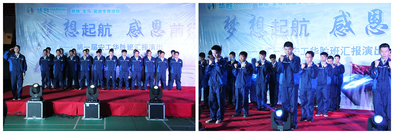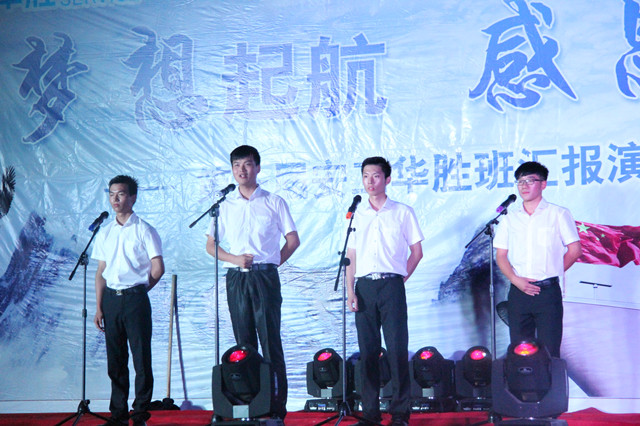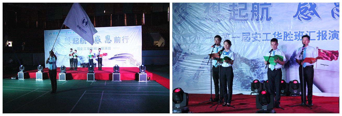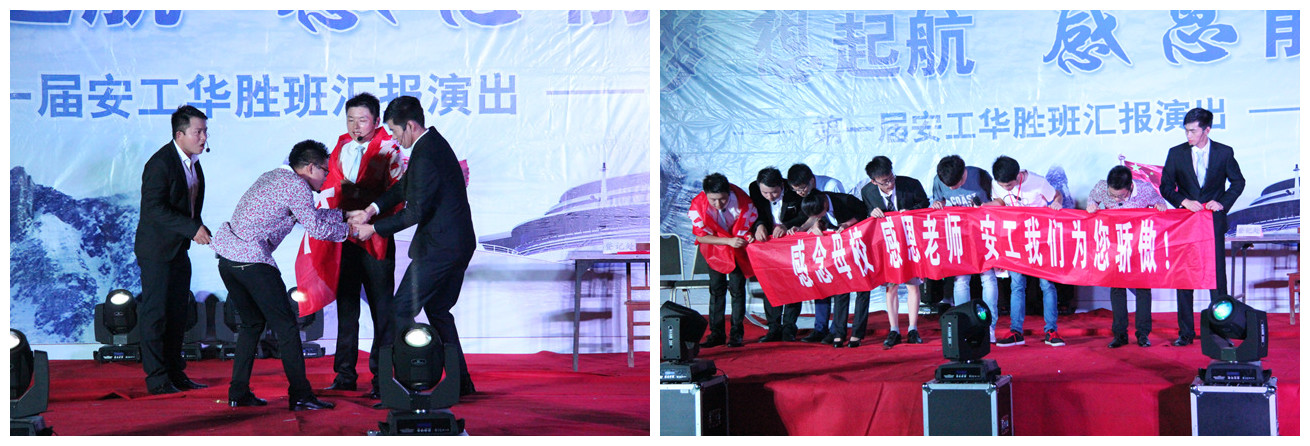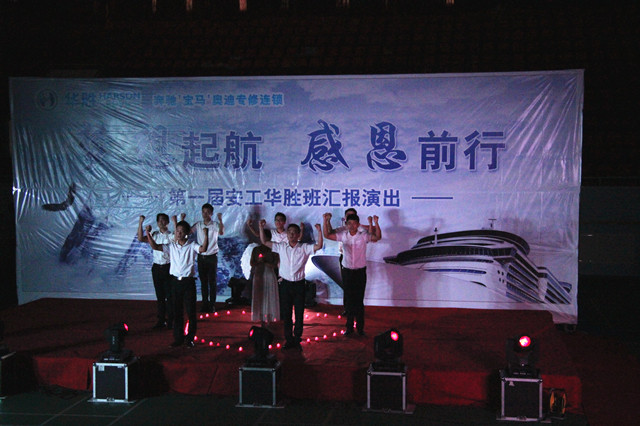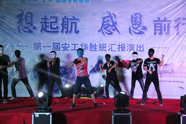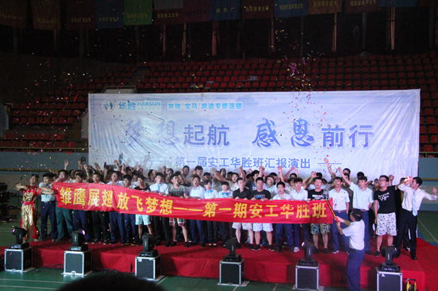 “梦想起航、感恩前行”毕业汇报演出在学院体育馆举行,演出由舞蹈《感恩的心》拉开帷幕。士气展示《团队风采》震撼了全场,淋漓尽致地展示了安工华胜班全体同学的精神风貌。在朗诵、小品、舞蹈、情景剧等一个个精彩的节目中,学生们用优美的舞姿、动听的音乐、惟妙惟肖的表演来表达对母校、对华胜集团的感恩,述说对未来生活的希望。华胜集团宜兴店、无锡店、常州店的工作人员也千里迢迢赶来,为这场演出准备了丰富、精彩的节目。