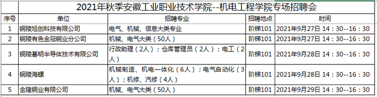 2021年秋季机电工程学院专场招聘会