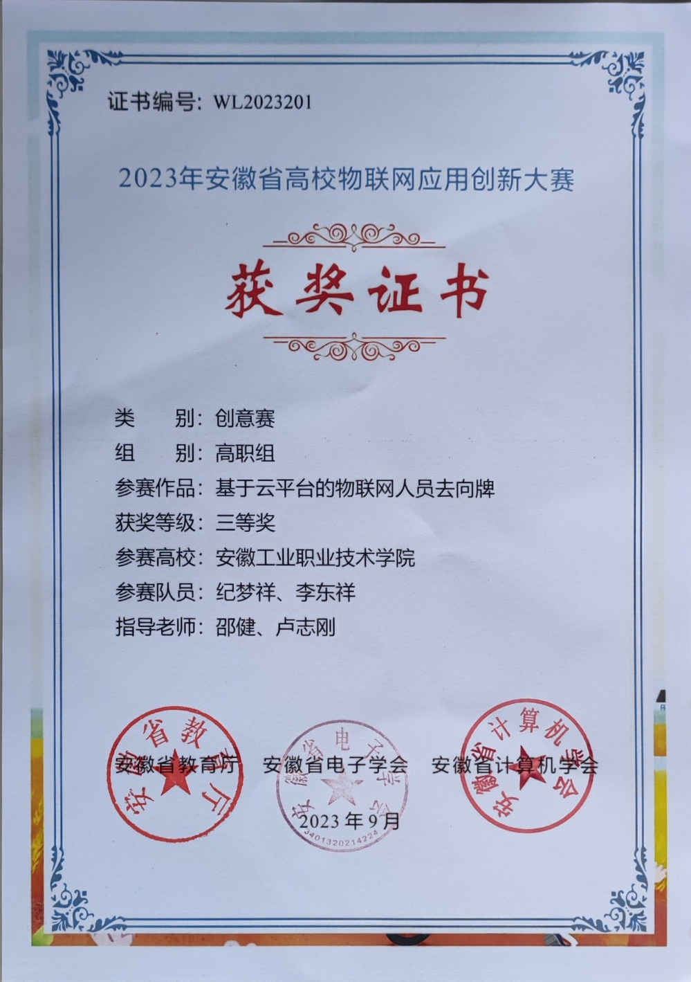 近三年省赛获奖(电)