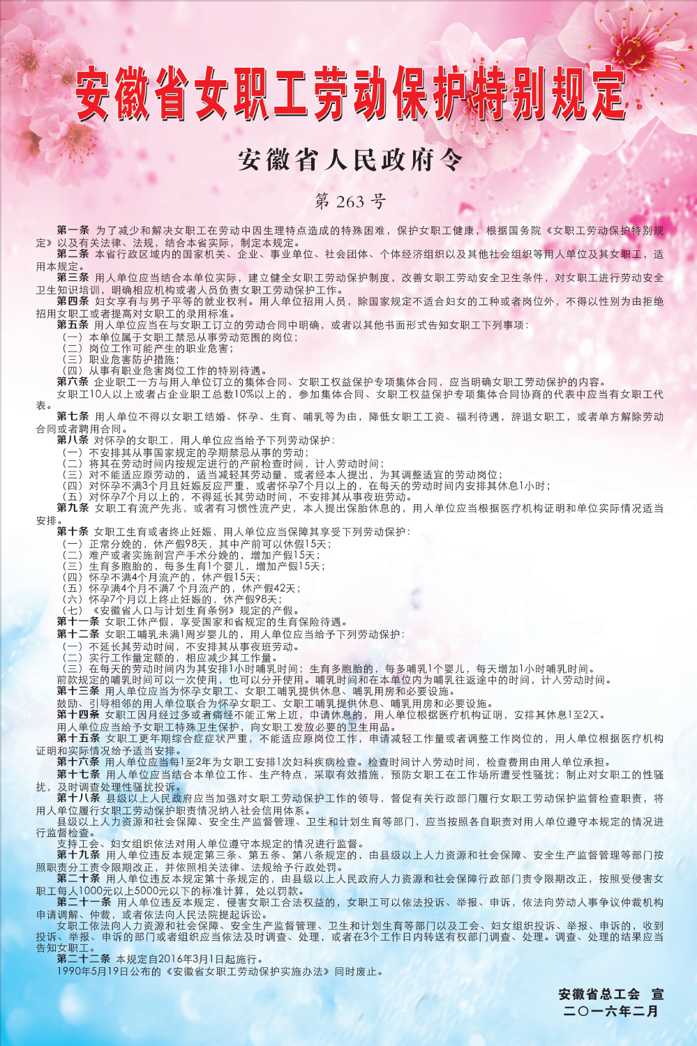 《安徽省女职工劳动保护特别规定》