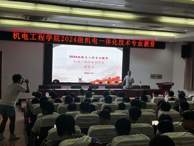 为使2024级新生深入了解专业前沿动态,科学规划大学生涯,近日,机电工程学院成功举办了面向全体新生的专业发展新动态主题讲座。本次讲座覆盖学院所设的数控技术、汽车检测与维修技术、新能源汽车技术、机电设备技术、模具设计与制造、机械制造与自动化、机电一体化技术、电气自动化技术、物联网应用技术、工业机器人技术等全部10个特色专业,学院16个新生班级、近800名学子分专业聆听了这次内容丰富、前瞻性强的入学教育课。