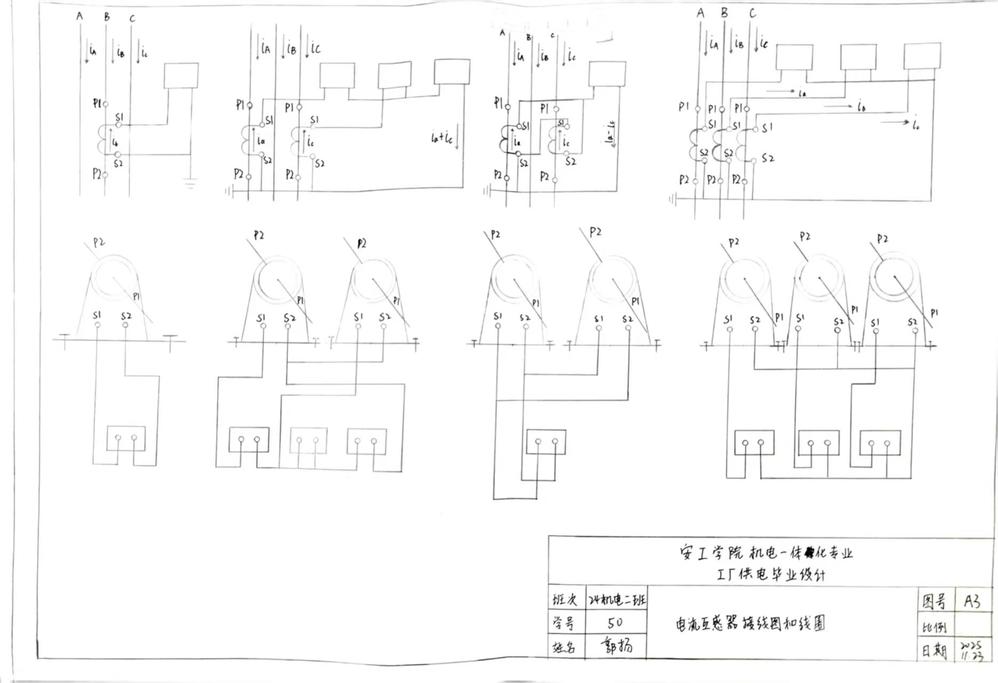 电流互感器接线方式和工厂供配电主接线原理设计图