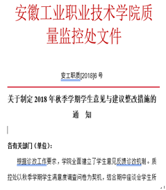 在调查问卷中,学生共提出2056条意见或建议,学院质控处将调查问卷中的意见和期中学生座谈会所提意见进行了汇总、分类与合并,最终形成意见99条,并发送给相关部门(系部)负责人 ,要求各相关部门(系部)针对学生提出的意见与建议进行认真分析,制定出有针对性,且行之有效的整改措施,明确整改完成时间并认真落实整改。