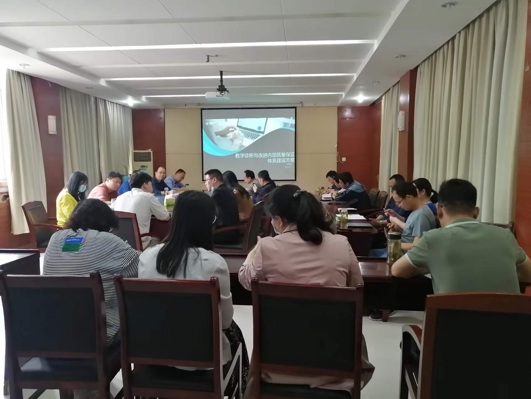 2022年5月18日上午,学院在第一行政楼一楼会议室召开教学诊改内部质量保证体系建设方案培训会。学院副院长秦华生,党委委员、人事处处长黄仕银,党委委员罗海峰,教学工作诊改小组成员,各二级院系党支部书记及教学副主任共计26人参加了本次会议,会议由教务处(质控处)处长刘春友主持。