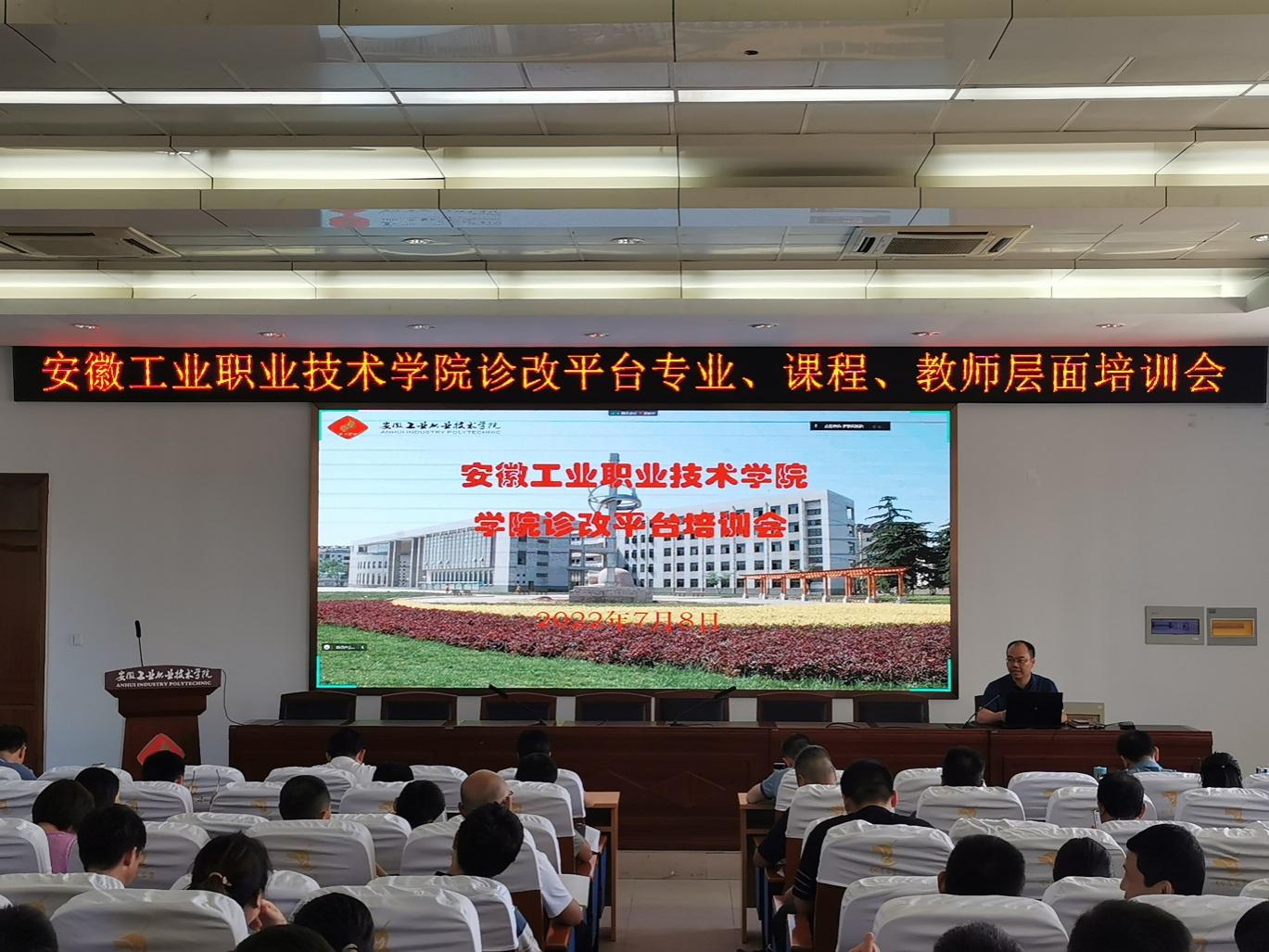 为使学院诊改工作进一步落实落细,7月8号下午,学院在教学楼201报告厅召开了诊改平台专业、课程、教师三个层面的培训会,学院党委副书记范清义、党委委员罗海峰、全体教师共计130余人参与了本次会议,会议由教务处负责人主持。