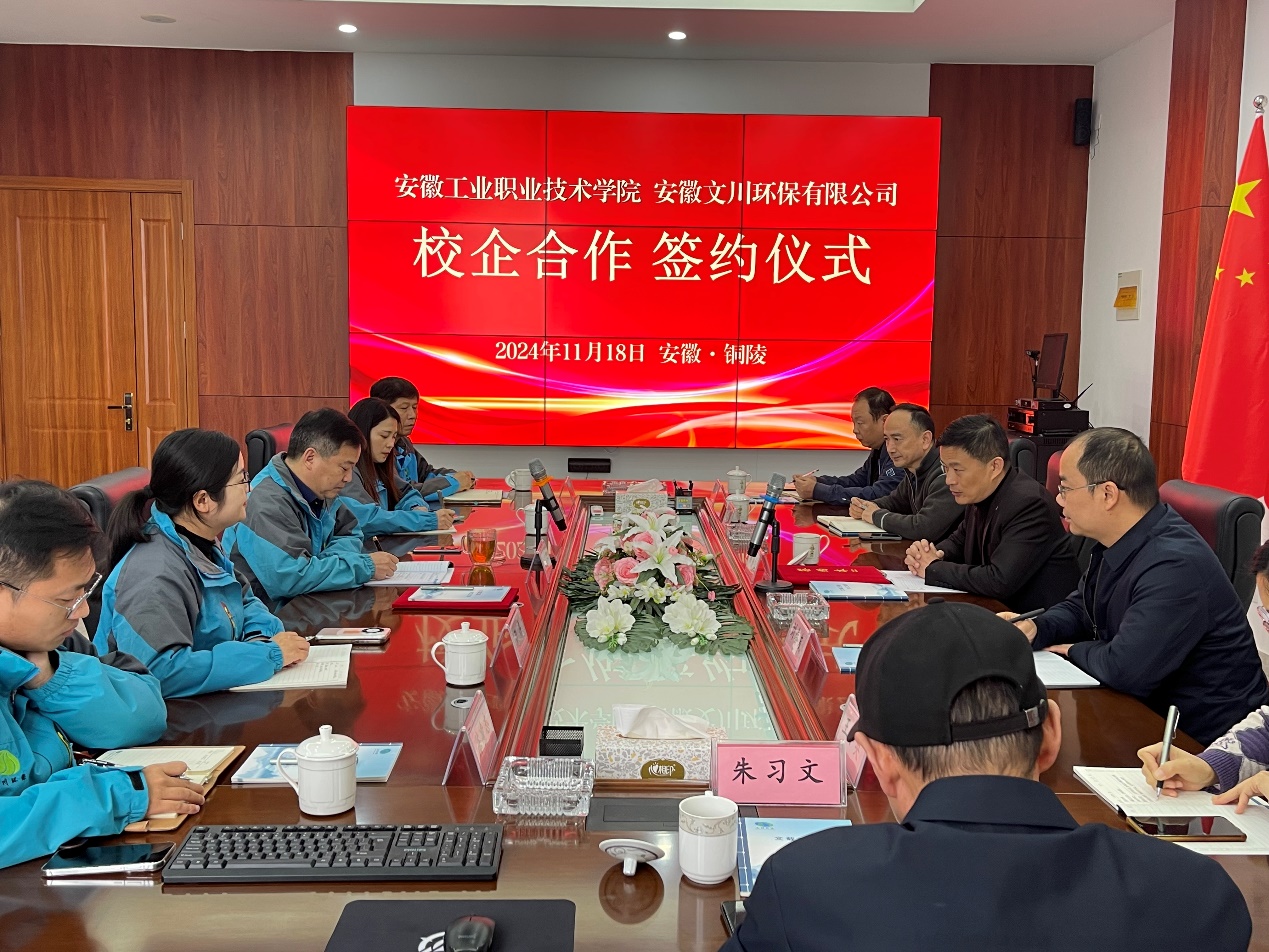 为深化产教融合和校企合作,进一步增强与企业的互动,拓宽学生实习和就业渠道,应安徽文川环保有限公司黄言欢总经理的诚挚邀请,11月18日下午,学院党委副书记、副院长秦华生率队前往安徽文川环保有限公司,就校企合作事宜进行深入洽谈。市生态环境局宣教中心的朱习文主任出席此次会议,学院教务处、招生就业处、资源开发系的相关负责人参加会议。