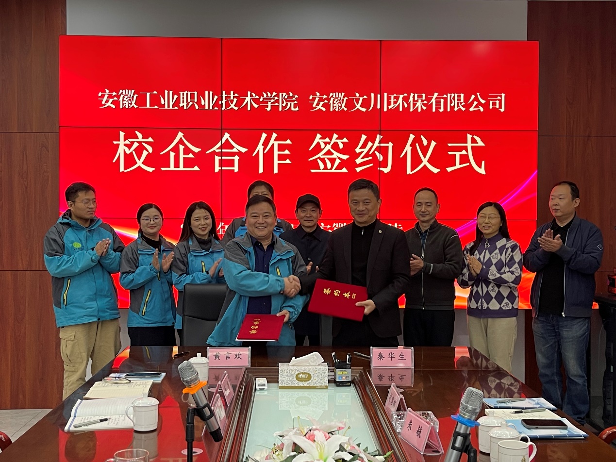 为深化产教融合和校企合作,进一步增强与企业的互动,拓宽学生实习和就业渠道,应安徽文川环保有限公司黄言欢总经理的诚挚邀请,11月18日下午,学院党委副书记、副院长秦华生率队前往安徽文川环保有限公司,就校企合作事宜进行深入洽谈。市生态环境局宣教中心的朱习文主任出席此次会议,学院教务处、招生就业处、资源开发系的相关负责人参加会议。