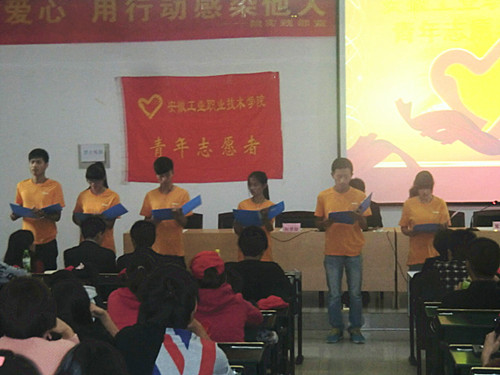青年志愿者行动是动员和带领广大青年投身两个文明建设的可贵尝试和新的创造。新一届青年志愿者服务队的成立标志着学院青年志愿者工作进入到一个新的发展时期,意味着学院青年志愿者工作将更加规范化、制度化。