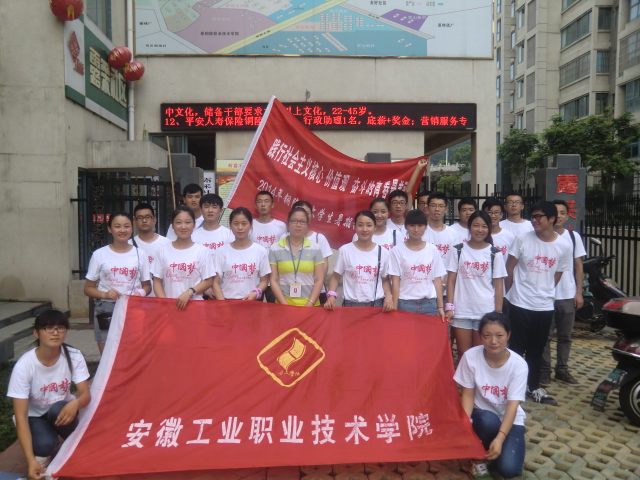 为深入贯彻习近平总书记五四在北京大学的重要讲话精神,鼓励广大青年自觉树立和践行社会主义核心价值观,促进青年学生“向实践学习、向人民群众学习”,2014年暑期,学院团委以“践行核心价值观·奋斗青春最美丽”为主题,组织23名青年学生深入铜陵市露采社区和大通镇福光村开展反邪教宣传、关爱留守儿童等社会实践活动。