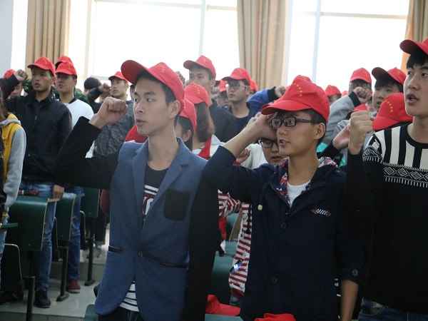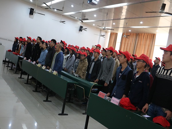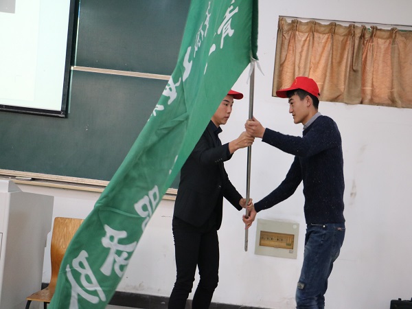 随后大会进入高潮阶段——院青年志愿者工作授旗仪式,仪式在《中国青年志愿者之歌》悠扬旋律的伴奏下隆重开始,院青志协会负责人曹帅帅为15级新生志愿者代表李彪同学授旗。授旗结束后,志愿者代表进行宣誓,庄严的誓言响彻全场,“我愿意成为一名光荣的志愿者,我承诺:尽己所能,不计报酬... ...”,喊出的不仅仅是誓词,更是一种担当。最后,院团委书记何慧凝老师作总结发言,勉励青年学生挥洒青春,奉献社会,并就做好青年志愿者服务工作提出三点希望:一是希望学生志愿者们在服务大局中寻求发展,强化大局意识;二是希望学生志愿者们能坚持在社会实践活动中,将青年志愿者精神发扬光大;三是希望学生志愿者们在规范中求发展,在发展中求提高。