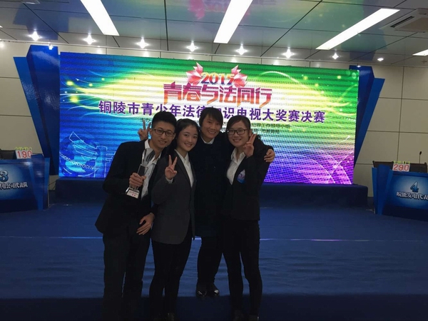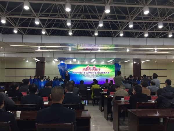 为深入学习贯彻党的十八届四中、五中全会和习近平总书记关于依法治国的重要讲话精神,迎接第二个“国家宪法日”的到来,培育在铜青少年崇尚法治、信仰法律的法治理念和学法尊法守法用法的行为习惯,11月19日上午,“青春与法同行”2015年铜陵市青少年法律知识电视大奖赛总决赛在市公安局举行。共有6支代表队进入了决赛阶段进行最终角逐,分别是:市国税局、市公安局、铜化集团、国网铜陵分公司、皖能发电公司和金年会大学生代表队。