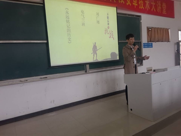活动自今年10月份启动以来,经过各系选拔,最终17名选手脱颖而出进入决赛。决赛现场,选手们个个精神饱满、声情并茂、慷慨激昂,痛斥了当年日本军国主义分子的滔天罪行,赞颂了中国人民不屈不挠反抗侵略的英雄事迹,歌颂了中国共产党在抗战中取得的丰功伟绩,弘扬了在抗战中孕育出的伟大民族精神。并结合自己的理想与追求,在演讲中讲述如何牢记历史,把抗战英雄保家卫国、浴血奋战的战斗精神传承下去。通过演讲活动,大家抒发了热爱祖国的真挚情感,同时也让现场观看演讲的师生们受到了一次生动的爱国主义教育。选手们精湛的演讲技巧和真挚的情感流露,几度让在场听众潸然泪下、感动不已,不时赢得大家的阵阵掌声。
