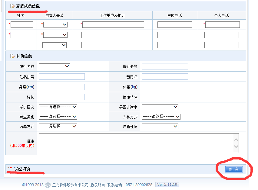 4.先点击“学生信息”,再点击“信息修改申请”。将标有*的项目填写完整,不得漏填、乱填。填写完毕之后,请点击保存即可。