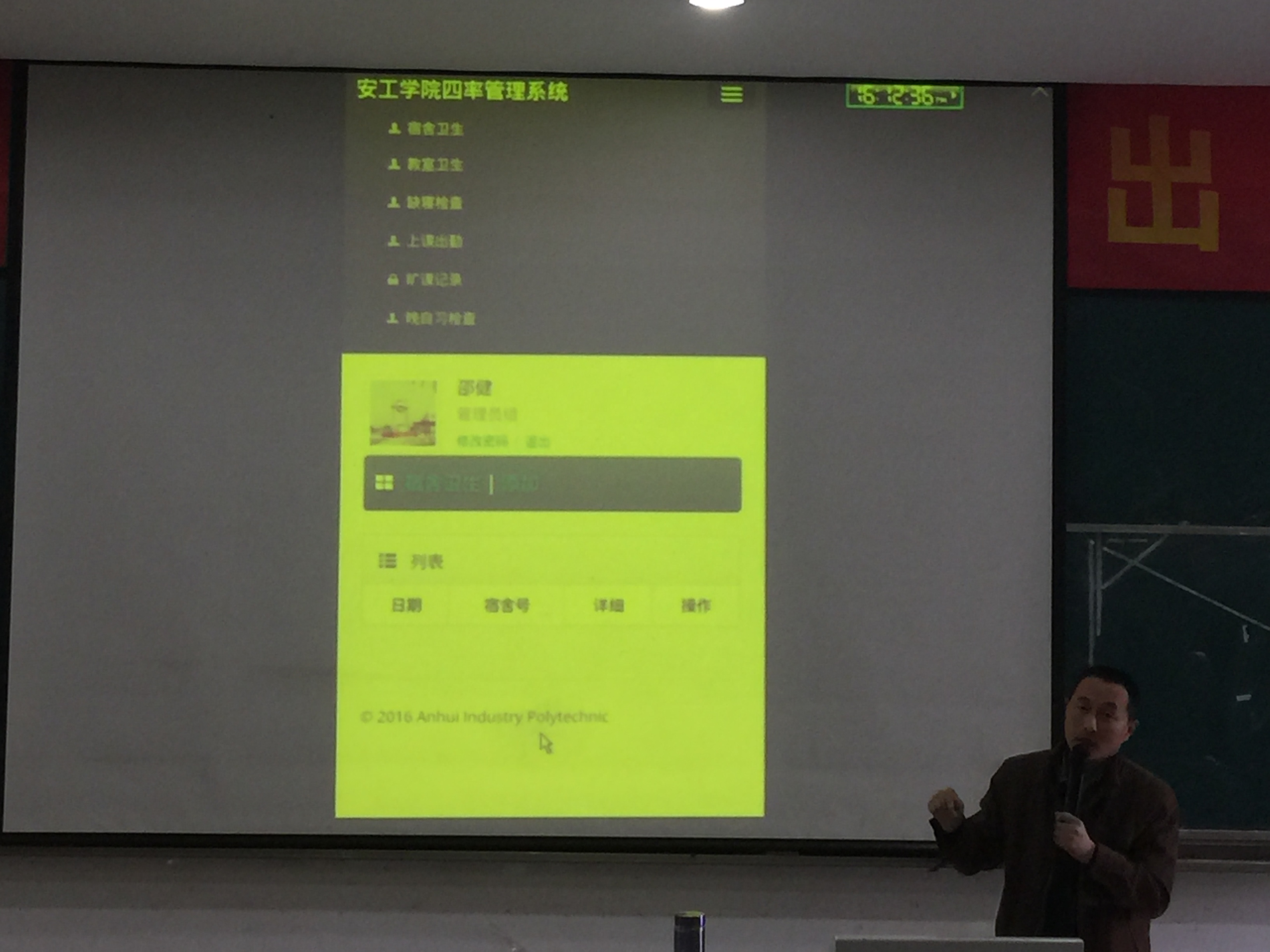 电气系邵书记是四率系统的开发者之一,他在培训大会上详细地为学生们介绍了该系统的组成部分、主要内容以及操作方法,并在电脑上展示了登录系统、记录出勤人数、上传缺勤学生信息等一系列流程。