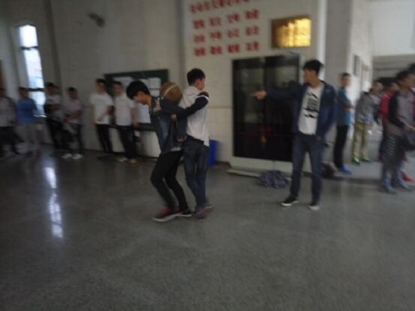 大家并排着站成一排,并将各自的腿绑在一起,双手互相搭着两边队友的肩膀。在各班班长的带领下,大家认真训练,斗志高昂,即使常常由于步伐不一样而摔在地上,但大家为了集体的荣誉,都打起了一百二十分的精力,为了即将举行的比赛而努力着!