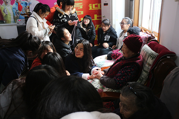 一位老奶奶,92岁高龄,仍是精神抖擞,饶有回味的给我们讲解放战争时期的岁月和她年轻时期的生活,告诉我们要珍惜今天的幸福生活。老奶奶还为我们演唱了一首老歌,志愿者们轻轻地为老人打着节拍,静静地听老人重温岁月的旋律。最后,在全体青协成员大合唱《明天会更好》的柔美歌声中结束了我们的文艺表演。