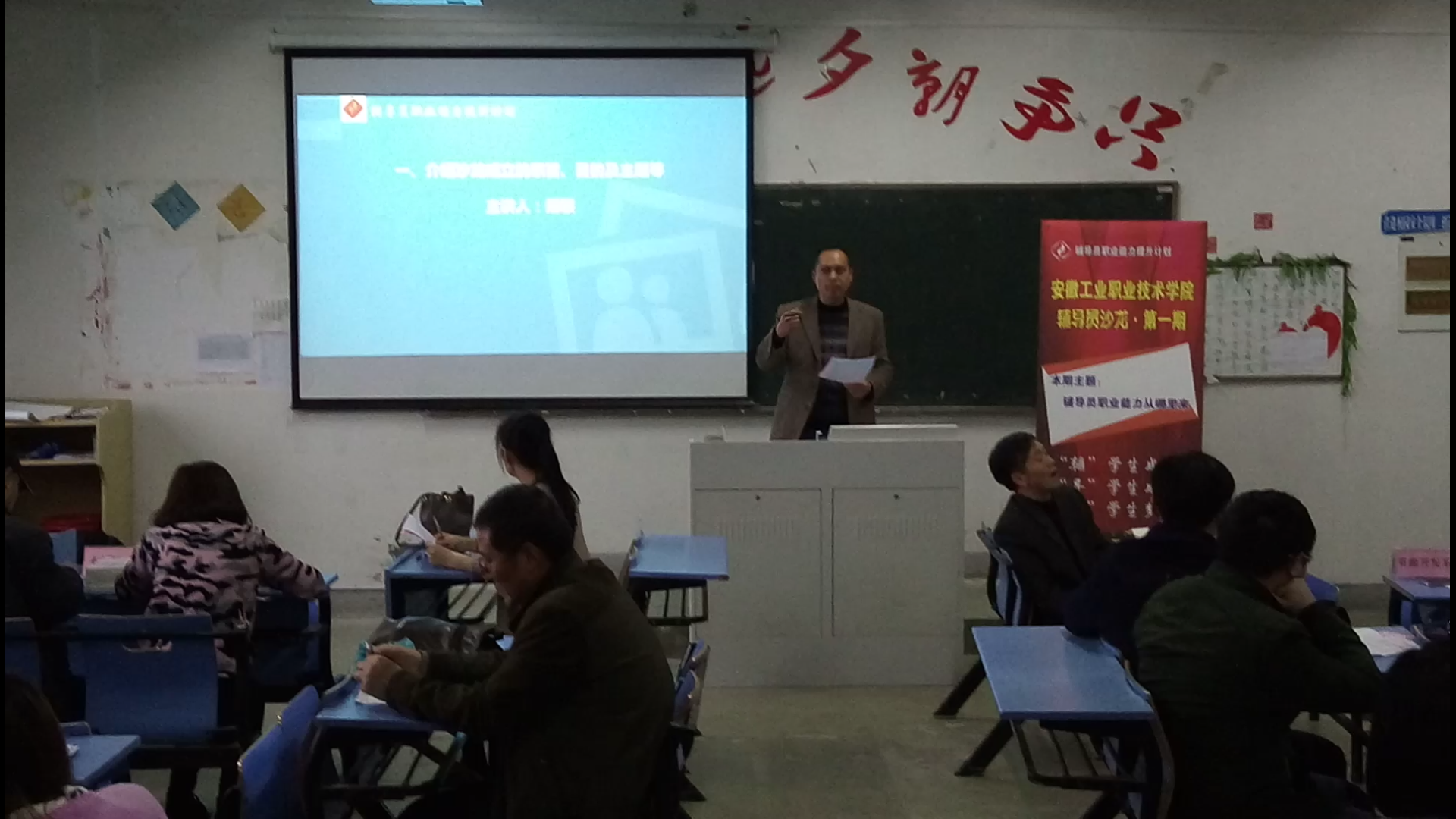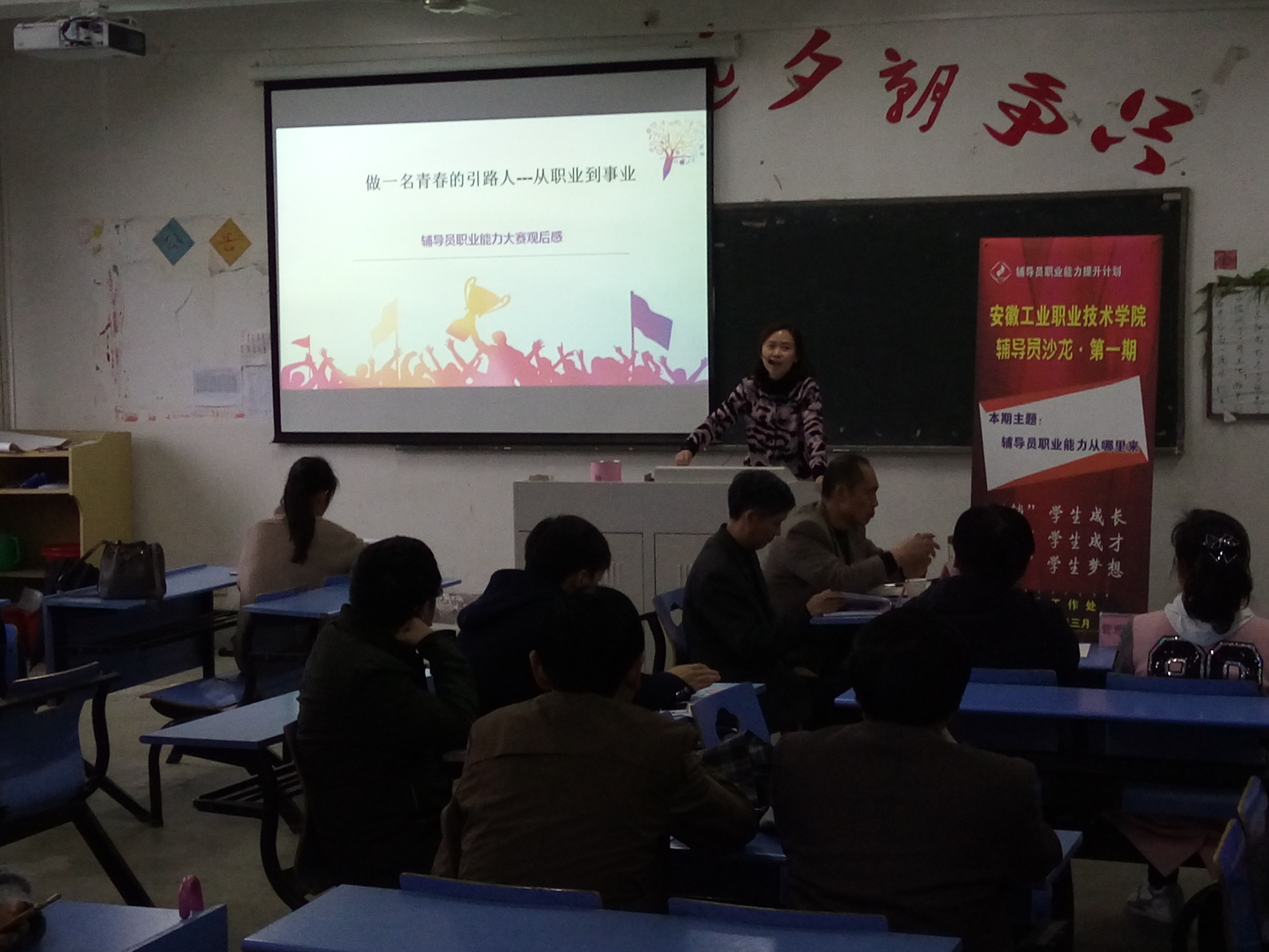 为认真贯彻落实全国高校思想政治工作会议精神,切实加强金年会辅导员队伍建设,推动辅导员探讨工作、交流经验、共享成果,为辅导员构筑一个持续性、开放性、研究性的平台,由学生工作处创办的“辅导员沙龙”于3月30日下午四点在图文信息楼505教室举办,首期活动的主题是“辅导员职业能力从哪里来”。学院副院长周理瑞、学生处负责人、各系书记及辅导员代表共40人参加了此次活动。
