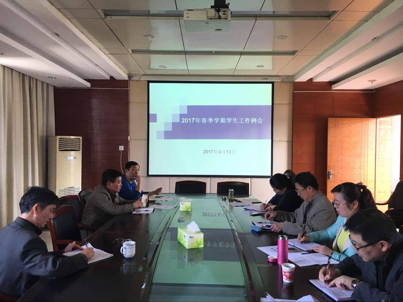 为学习贯彻全国高校思想政治工作会议精神,认真总结开学以来的学生工作,4月13日下午,学院召开了月度学生工作例会,副院长周理瑞、学生处、公寓办、各系部书记共12人参加了此次会议。