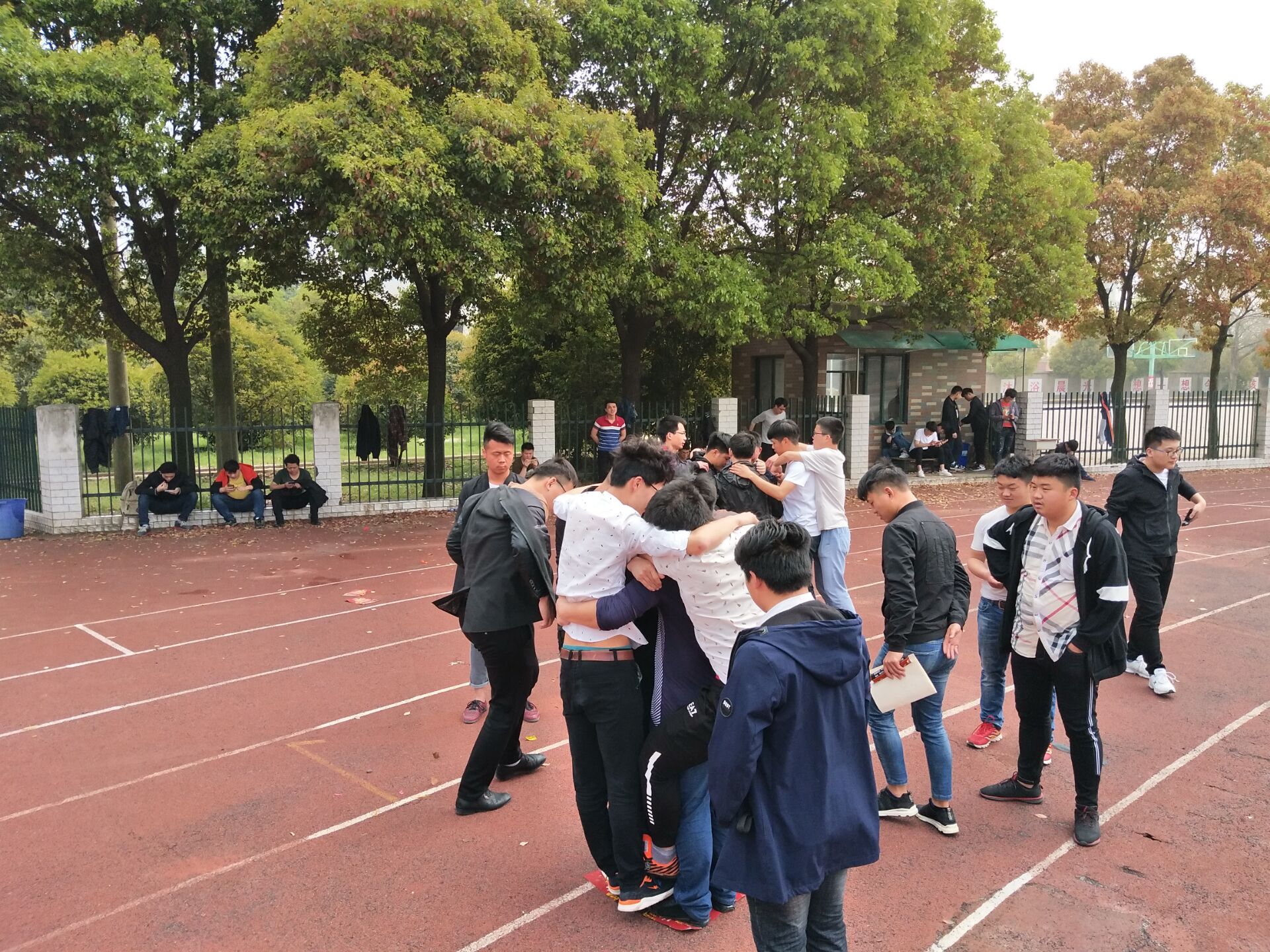 比赛伊始在各班班干的带领下同学们进入了操场,在比赛中同学们积极参加,踊跃表现、相互配合。呐喊声、加油声此起彼伏,现场气氛十分活跃,比赛现场既紧张又轻松。参加比赛的同学有条不紊的进行各轮比赛。