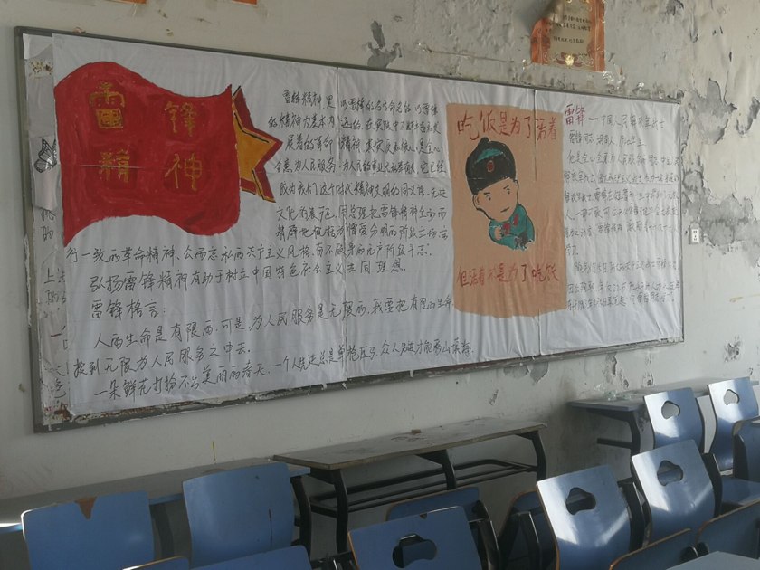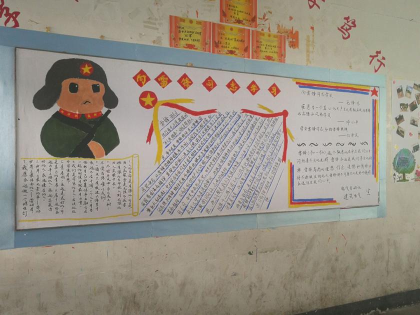 雷锋离我们并不遥远,他并不是一个外在于我们的高高在上的道德神像,ÿ个人心中都有一个雷锋。所有板报中展现了雷锋同志的热心公益、乐于助人、扶贫济困、见义勇为、善待他人、奉献社会的精神。