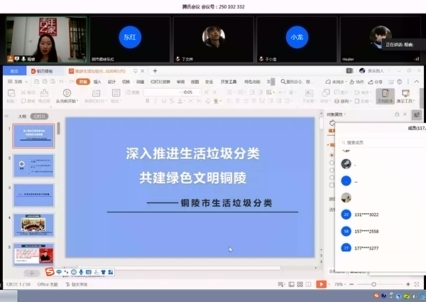 培训过程中,宣讲员为青年志愿者讲解垃圾分类的政策背景和各项常识,并结合6月1日起执行的《铜陵市垃圾分类管理条例》强调青年志愿者应该从我做起,向身边人宣传垃圾分类知识,为建设幸福美丽新铜陵贡献青春力量。线上培训会最后,宣讲员通过视频和志愿者交流答疑。