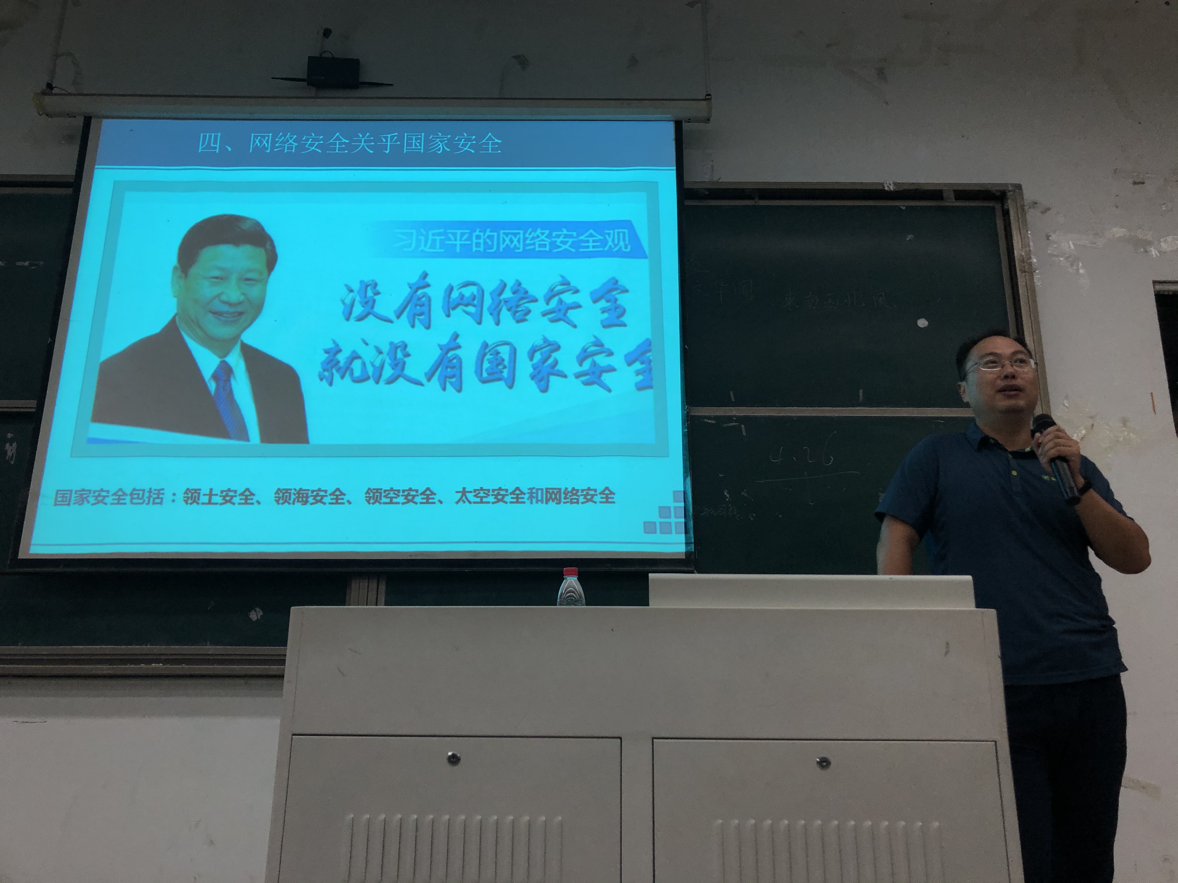 讲座中,庄主任首先分析了我国网络安全现状,并结合实例深入浅出地讲解了当前网络安全的主要威胁,生动形象地描述了木马和病毒的套路,提高了同学们的辨别能力。庄主任引用习总书记“没有网络安全,就没有国家安全”的讲话,阐述了网络安全在国家安全中的重要性,希望同学们自觉遵守《网络安全法》,自觉维护网络安全,发挥“正能量”,成为维护网络安全的志愿者和践行者。