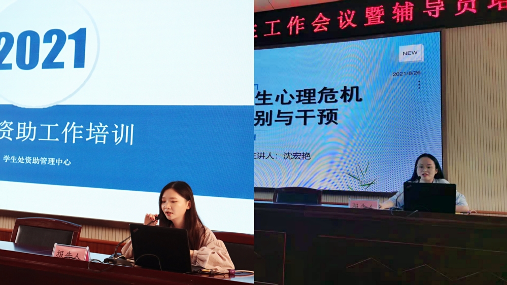 本届辅导员培训内容丰富多样,学院党委副书记范清义为我们作了题为《学习贯彻习近平总书记在庆祝中国共产党成立100周年大会上的重要讲话精神》的报告,详细解读了习近平总书记“七一”重要讲话的新思想新观点新要求,为我们深刻领会和把握总书记“七一”重要讲话的重大意义、丰富内涵、核心要义、实践要求,切实把思想和行动统一到讲话精神上来起到了重要的指导和推动作用;学生处副处长薛雨婷针对新学年学生资助工作进行了政策梳理和经验分享,号召学生工作人员进一步强化服务意识,确保各项政策精准地落到实处;最后,学院大学生心理健康中心沈宏艳老师结合自身实践经验,围绕心理健康基本常识和校园心理危机的识别与干预策略,多角度分析了大学生心理问题的现状,针对心理状态分类及处理给出了科学合理的建议。