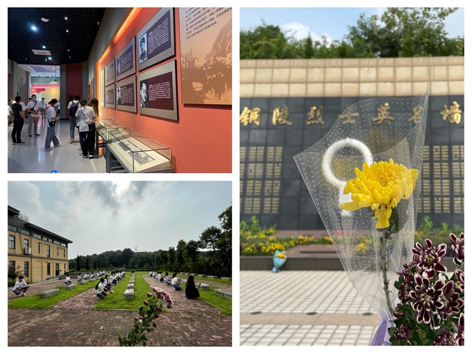 为深刻学习党史,三位同学在党旗、团旗下给同学们做党史精神宣讲。随后,团委老师带领同学们在铜陵烈士纪念馆前重温入团誓词,最后,全体成员在铜陵烈士塔下鞠躬默哀,深切缅怀革命先烈。