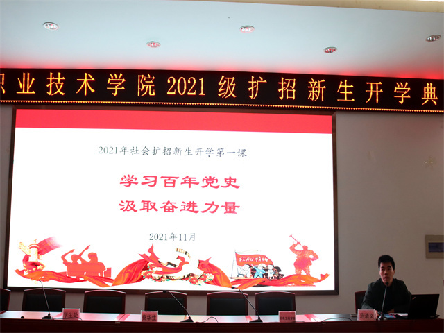 11月7日上午,金年会2021级高职扩招新生开学典礼在教学楼阶梯201报告厅隆重举行。学院党委副书记范清义,党委委员、副院长秦华生,教务处、学生处、各二级院系主要负责人及全体2021级扩招新生参加了典礼。