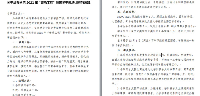 学院青年共产主义学校已成功开展十一期培训班,累计培训各级各类学生骨干1800余人次, 2020校级青马工程培训班学院160余人,培训方案如下: