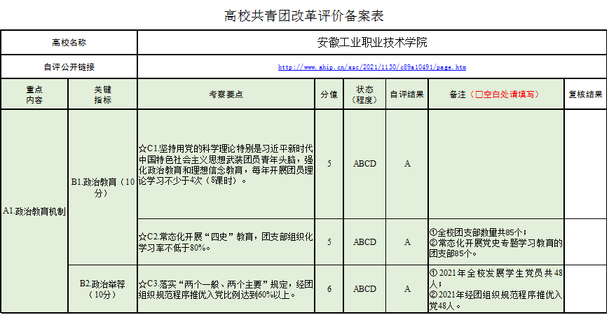 为落实团中央联合教育部下发的《深化学校共青团改革的若干措施》,按照《学校共青团改革评价实施方案》要求,接受广大师生监督,现将我校截至2021年11月共青团改革情况公开如下。