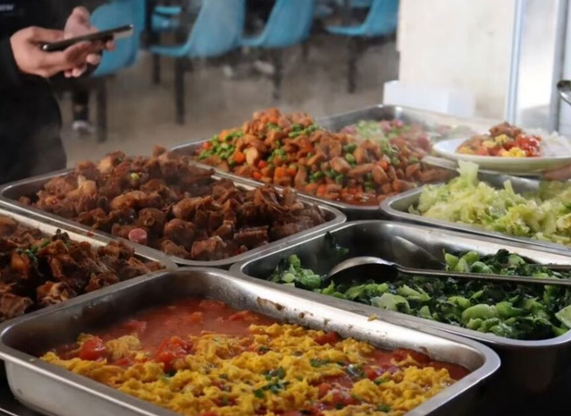 辛勤付出的食堂工作人员