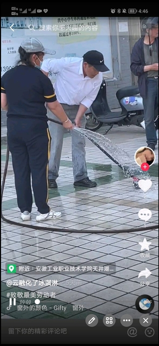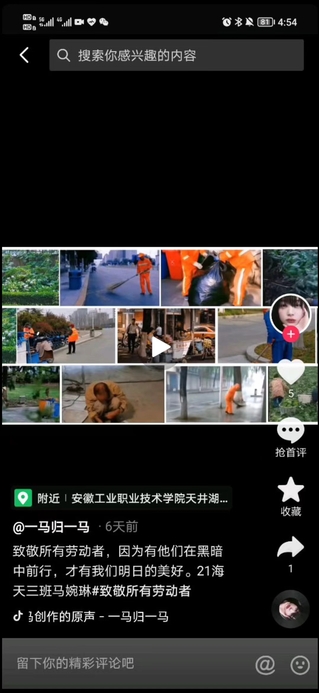 从活动中同学们了解到了劳动者的不易,纷纷录制自己心中想对劳动者说的话,上传视频至抖音平台进行打卡。