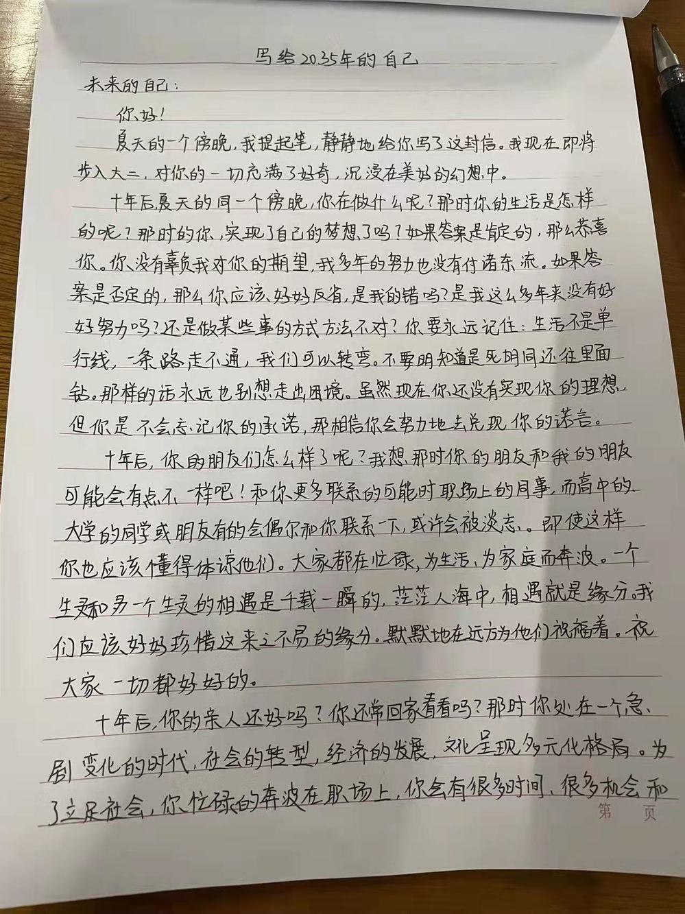 征文中,同学们描绘出了对未来的期盼,憧憬着未来的生活,珍惜现在的美好,表示要把小我融入大我、融入中华民族伟大复兴征程的远大理想,坚定“强国必定有我”的信念,只争朝夕,不负韶华,履行好“请党放心,强国有我”的庄严承诺,