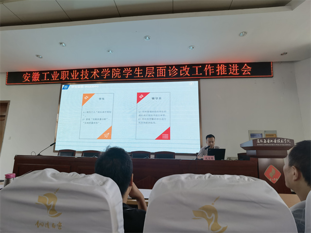 会上,学生处负责人从诊改工作简介、诊改机构与职责、学生发展标准指标体系、学生层面诊改流程和下一步工作等五个方面对学生层面诊改工作进行了介绍,并要求辅导员和班主任要高度重视诊改工作,切实履职尽责,按时、按质完成数据填报与审核工作。