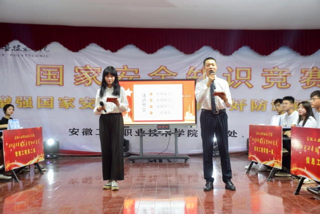 国家安全是安邦定国的重要基石,维护国家安全是全国各族人民根本利益所在。为进一步普及国家安全知识,增强同学们国家安全意识,更好地维护国家安全利益。6月17日,学院学生处、团委开展在大学生活动中心开展了“维护国家安全,共筑钢铁长城”国家安全知识竞赛。铜陵市民宗委桑永灿科长、学生处处长、团委副书记、二级院系团总支参加了本次活动。