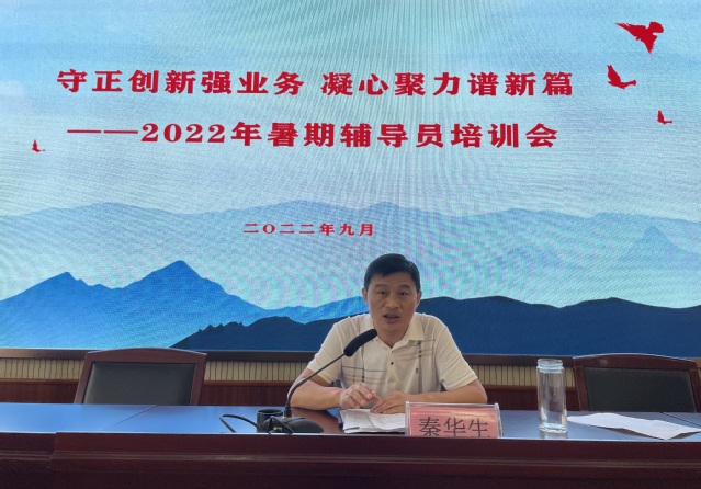 会上,副院长秦华生作动员讲话。秦院长充分肯定了辅导员队伍在学校各项事业发展中贡献的重要力量,强调了本次培训的重大意义,勉励全体辅导员进一步增强工作的使命感和责任感,并对今后如何进一步加强辅导员队伍建设提出了四点要求:一要进一步强化理想信念教育;二要加强新时代学生工作研究;三要落实精细化管理和优质服务;四要落实辅导员工作责任制。