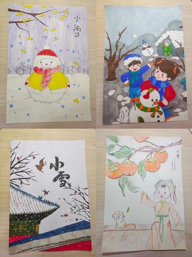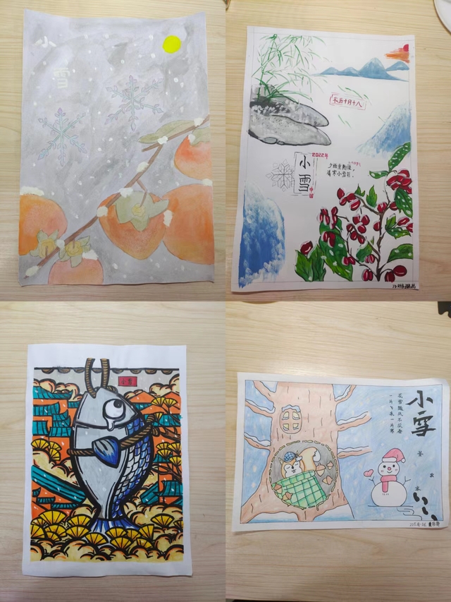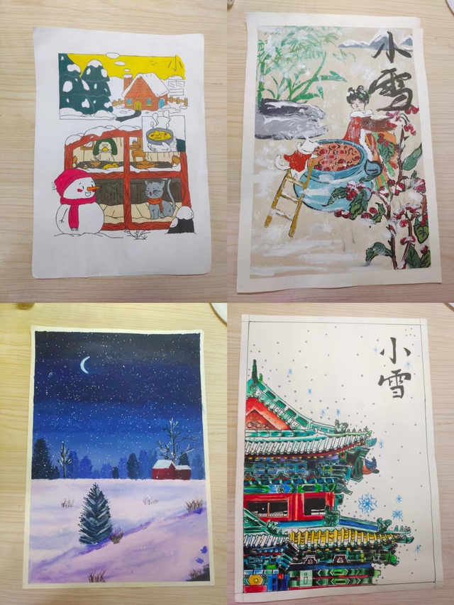 此次活动中,同学们通过搜集小雪传统节气的资料,运用自己的绘画技巧、色彩搭配等,描绘出一幅幅精美的插画,可以看出同学们认真的态度和热爱,且涌现出了比较多优秀的作品。由此也让充实忙碌的日子变得更加有趣,富有色彩。