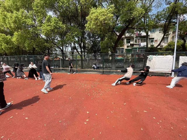 随着裁判预备开始声起,原本松弛的绳子瞬间紧绷,两队同学使出最大力气,都想把对方给拉过来,夺得名次,但是并没有那么容易,另外一个队伍同样也使出全部力气。在操场上没有比赛的同学喊加油,比赛的同学喊着口号,整个操场上洋溢着活力与激情。