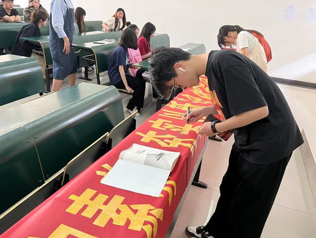 活动过程中同学们认真观看视频,并且在“贯彻国家安全观,增强全民国家安全意识和素养,夯实以新安全格局保障新发展格局的社会”横幅上签下了各自的名字。