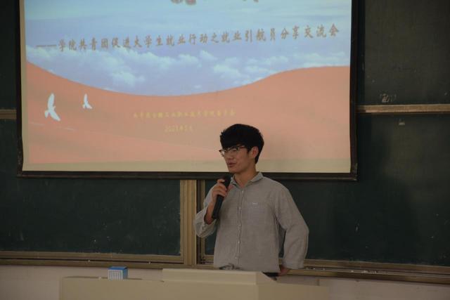 为了深入贯彻落实党的二十大精神和习近平总书记关于高校毕业生就业工作的重要指示精神,引导金年会大学生树立正确的择业观和就业观,提升大学生就业能力,5月12日,学院团委和招就处在阶梯教室202举办了共青团促进大学生就业活动之就业“领航员”分享交流活动。