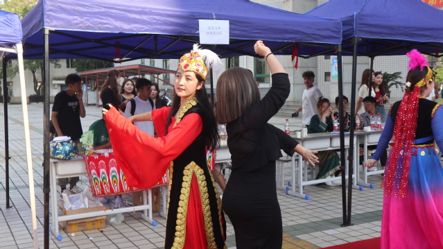 民族文化艺术节在欢乐和谐的氛围中拉开了序幕,活动现场设置了以民族文化为主题的场景展示区,包括新疆美食、民族特色服装、书法手工、民族特色展品、传统游戏体验等专题展区,通过民族歌舞表演、民俗特色展示,文化互动体验等多种形式,向全校师生展示了民族文化的独特魅力。