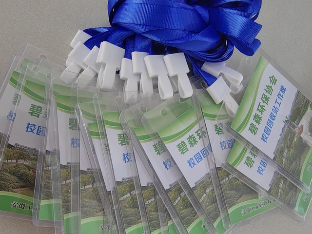 随着回收站工作的日渐成熟,在保卫处和宿管办的建议和要求下,碧森环保协会制作了校园回收站工作牌,回收站成员在开展回收活动时必须挂牌上岗,并且规定该工作牌不得外借,用以增强回收站成员的可辨识度,提高回收工作的规范性。